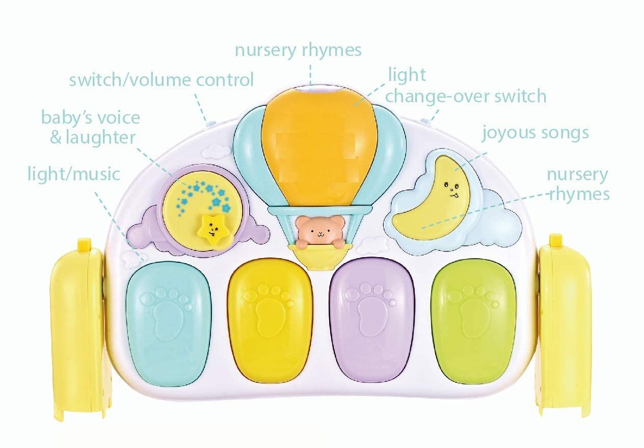 Salteaua include un pian muzical care va inspira creativitatea si va dezvolta simtul auditiv al bebelusului tau. Cu o arcada detasabila prevazuta cu proiector, micutul tau va fi captivat de imagini si culori, creand un mediu de somn linistit si relaxant.