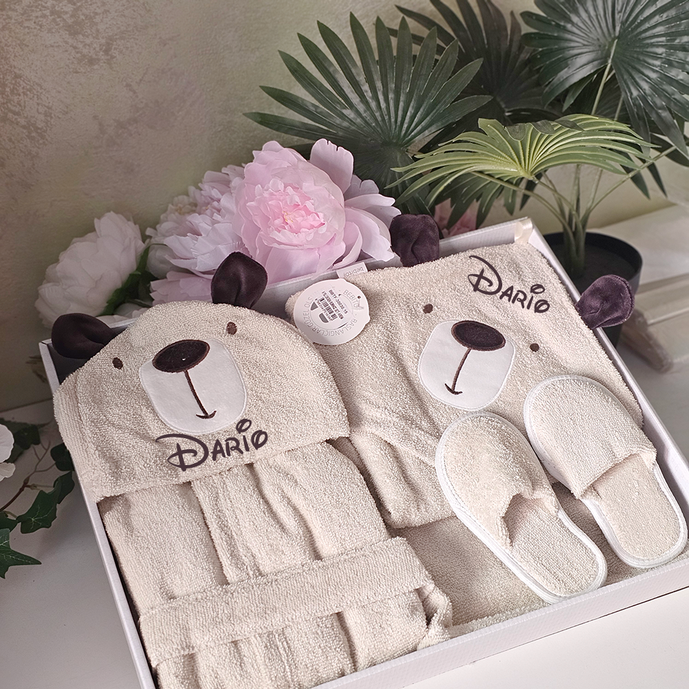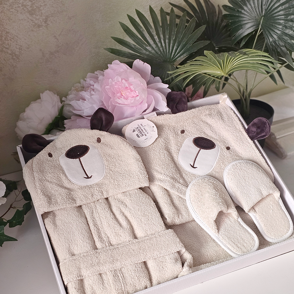 Simte-te in largul tau in timpul si dupa baie cu halatul nostru moale, prevazut cu un capison adorabil. Realizat dintr-un bumbac delicat, halatul imbraca bebelusul intr-un confort pur, oferindu-i o senzatie placuta si caldura. Halatul se poate personaliza cu numele bebelusulu idaca optati pentru aceasta optiune.