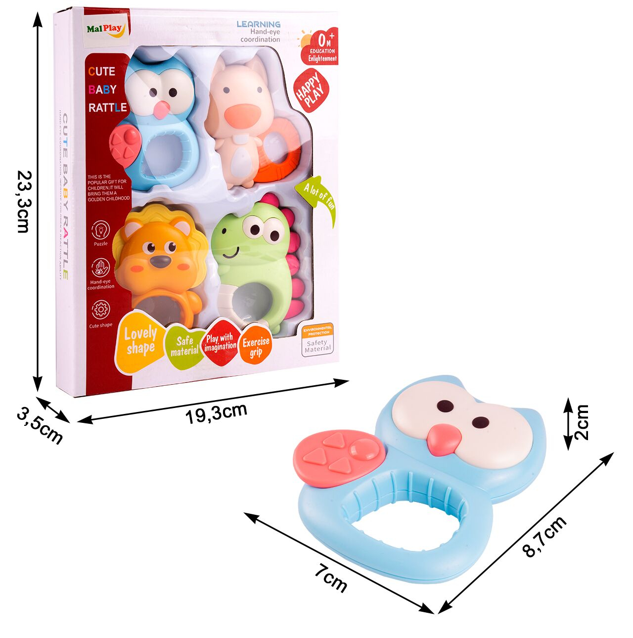 Ii va ajuta pe bebelusi sa isi exerseze flexibilitatea mainilor, favorizand dezvoltarea abilitatilor motorii fine si coordonarea mana-ochi prin prinderea de manerul jucariei. De asemenea, sunt perfecte pentru perioada dentitiei, oferind micutilor dumneavoastra un mod sigur de a calma disconfortul.