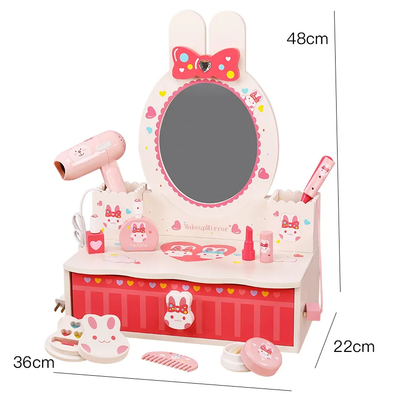 Ofera-i micutei tale sansa de a explora lumea modei si a ingrijirii personale cu acest set adorabil de masuta de toaleta! Creat special pentru fetitele pasionate de joaca de-a machiajul, acest set este perfect pentru a-i dezvolta abilitatile de coordonare si imaginatie.