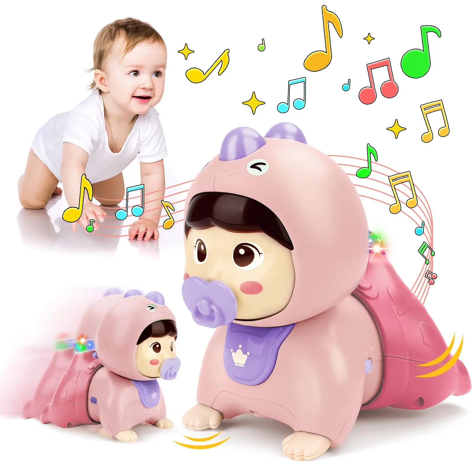 Descopera Bebe Dino Crawl & Fun – jucaria perfecta pentru a stimula miscarea si dezvoltarea coordonarii copilului tau! Aceasta jucarie simpatica sub forma de bebelus dinozaur este special conceputa pentru copii, incurajandu-i sa mearga de-a busilea si sa se distreze in acelasi timp. Cu lumini atragatoare si melodii vesele, Bebe Dino Crawl & Fun devine imediat cel mai bun partener de joaca.